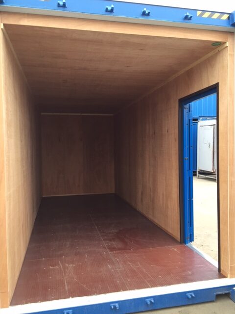 A simple shipping container office conversion from a 20ft high cube container, the client waned to fit out the office themselves we welded in place the personnel door and internally ply lined working from the client’s specifications.